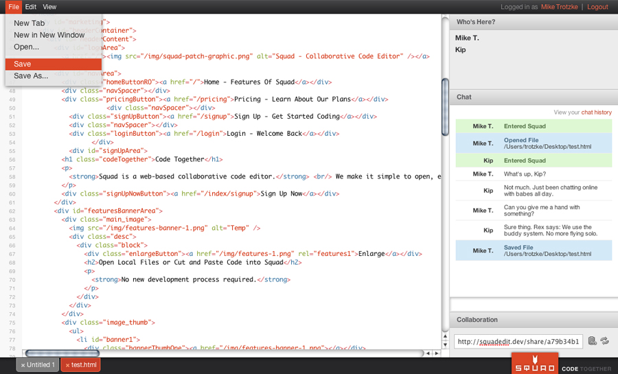 Squad is a web-based collaborative code editor. As the user experience lead, I: